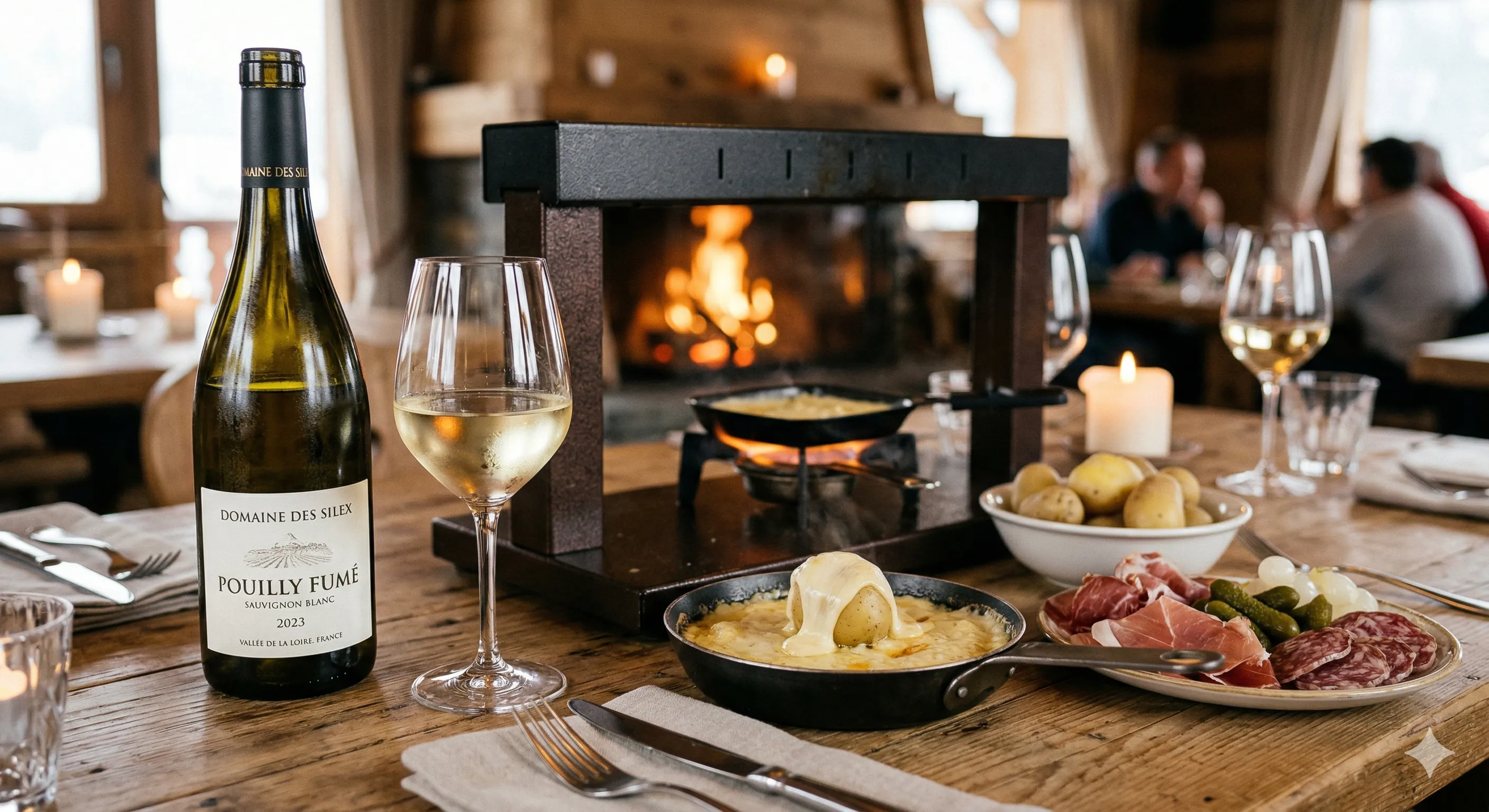 Le Pouilly Fumé fonctionne avec la raclette grâce à son acidité qui coupe la richesse du fromage fondu. Cependant, ce n'est pas l'accord idéal : le vin manque légèrement de corps pour vraiment sublimer le plat. Préférez un vin de Savoie (Jacquère, Roussette) ou un Chablis pour un résultat plus harmonieux.