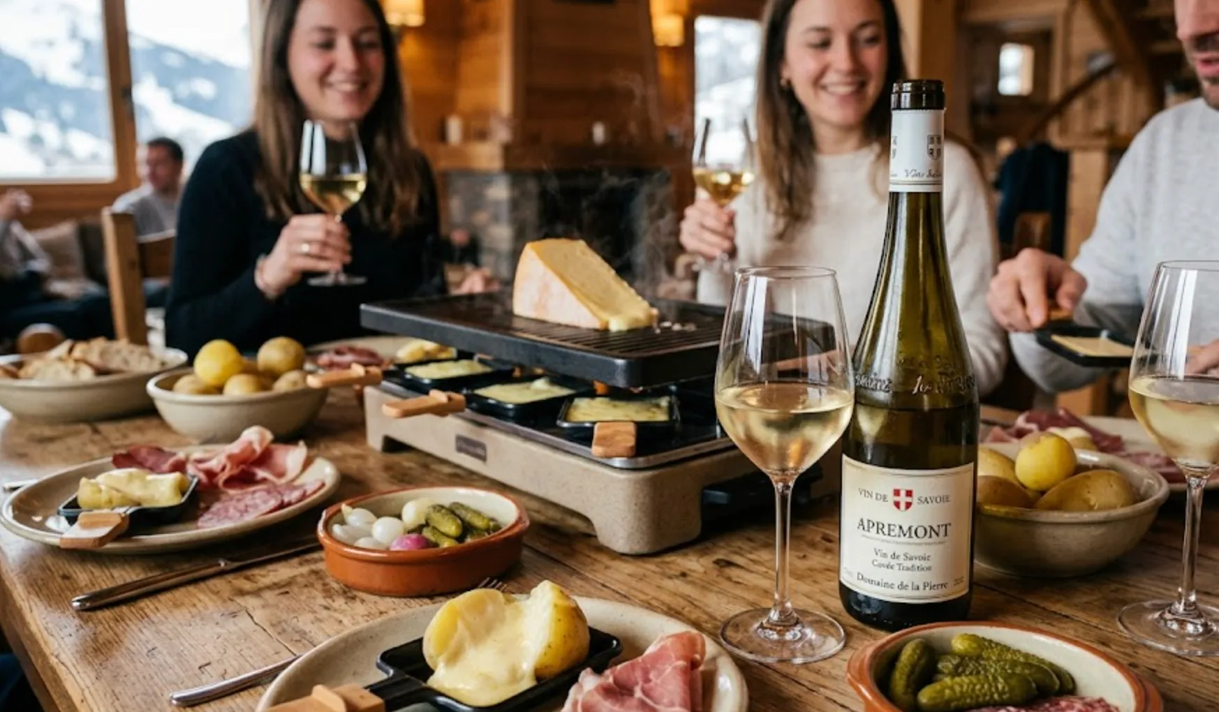 La raclette est une recette montagnarde convivial où le choix du vin est crucial tout comme pour la fondue de Savoie. Blanc ou rouge, chacun sublime différemment les saveurs des fromages fondus et de la charcuterie.